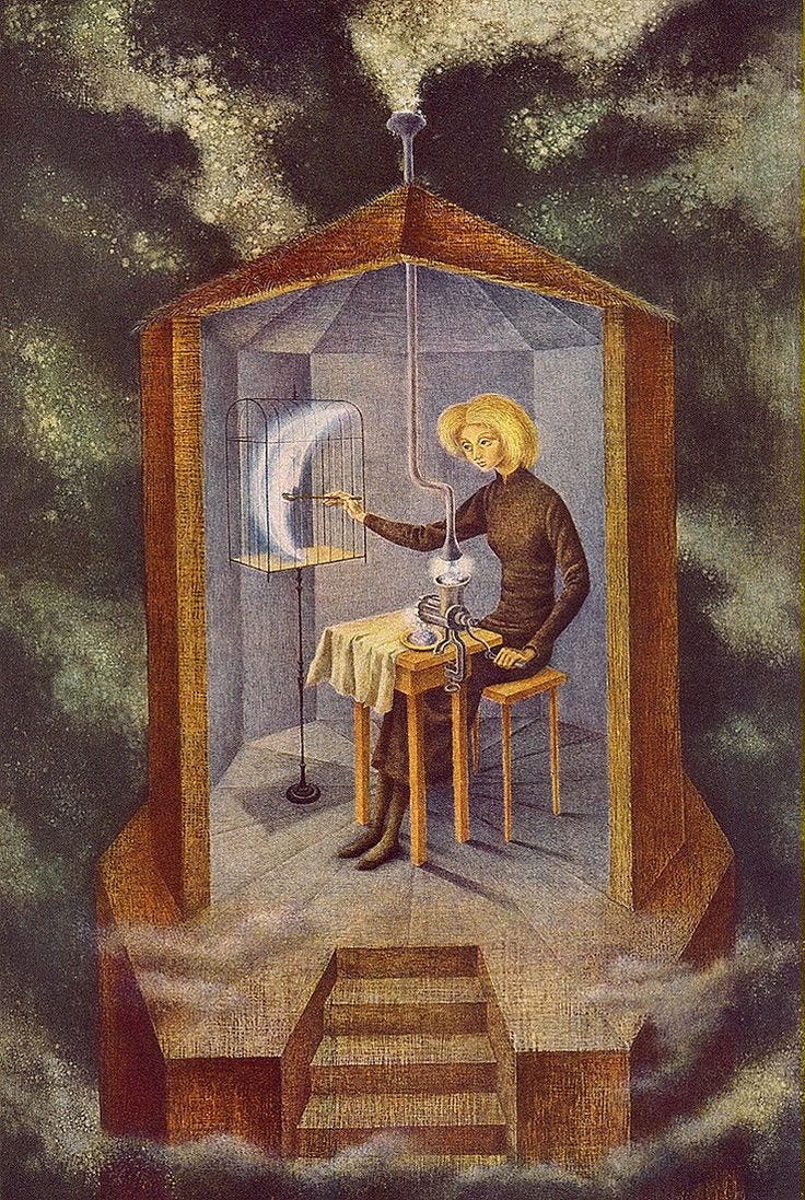 Junto con Remedios Varo y Kati Horna, Carrington exploró la alquimia no solo como una metáfora visual, sino como una práctica que entrelazaba la feminidad con el misterio. Sus cuadros están llenos de símbolos esotéricos: calderos que evocan la cocina y la brujería, seres híbridos en procesos de metamorfosis y arquitecturas que remiten a antiguos laboratorios alquímicos.