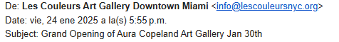 Recientemente, fui invitada al opening de una galería en Downtown Miami y también me pidieron escribir sobre el evento aquí en 8:40 pm. Fue un honor que pensaran en mí como amante del arte. Aunque ese día tengo clases, intentaré llegar al menos a una parte del evento para disfrutar y compartir lo que suceda.