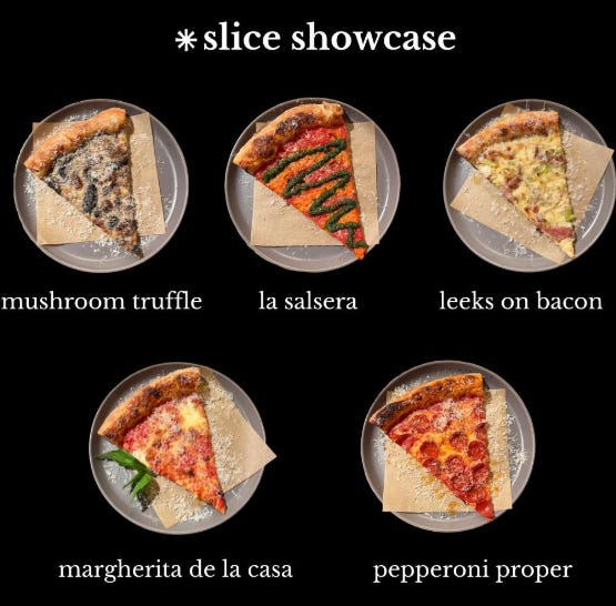 A pizza joint with a system: dine in? Talk to the host. Takeout? Get in line. They only take one order at a time. The drama of it all… there are playing hard to get.