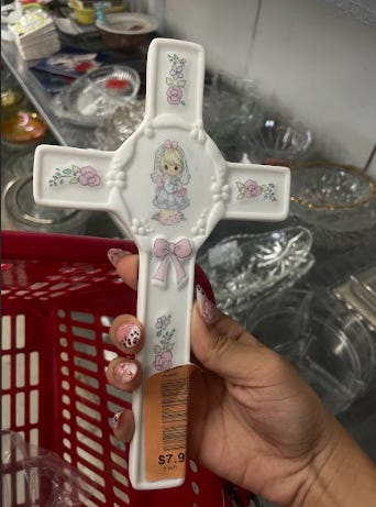 I love checking out the trinket section, especially the Precious Moments figurines. This time there weren’t many; maybe I got there too early. But I did find the cutest Christmas-themed Siamese cat salt shakers. So adorable :3