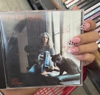 I found Tapestry by Carole King, which I’ve weirdly been listening to a lot lately. Especially It’s Too Late and So Far Away.